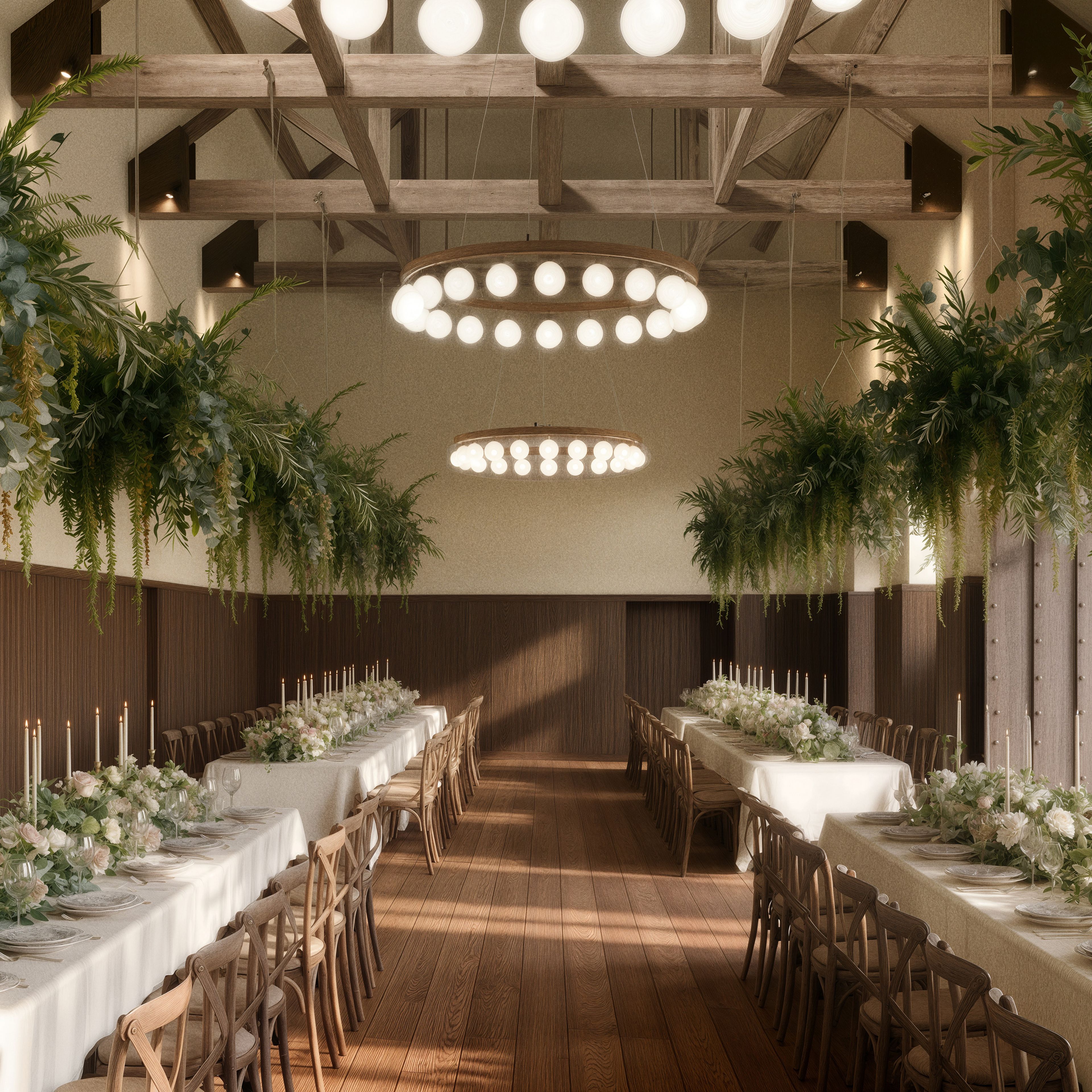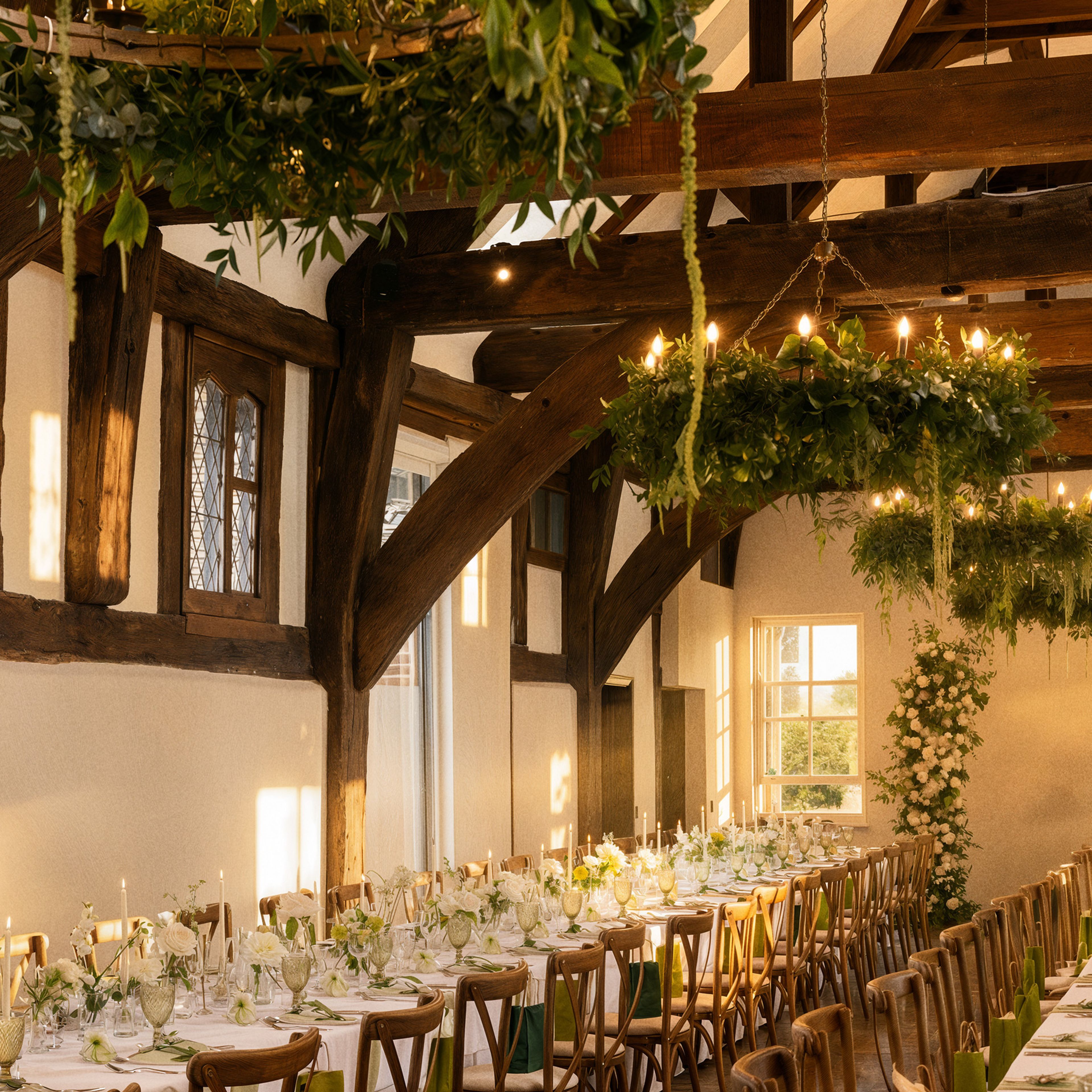 Flooded with light and lush green tones, this unique space is perfect for tasteful gatherings seating 60 people or 100 for a ceremony.